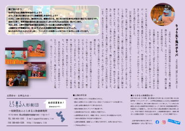 一般財団法人とらまる人形劇研究 〒712-8014 岡山県倉敷市連島中央1丁目11-7 TEL.086-486-1305 FAX.086-486-1306